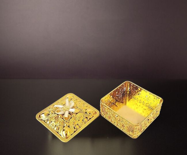 - Golden square Fibre box with bow – 3*3 inches 2 inches height