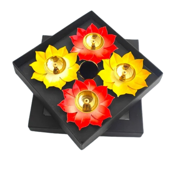 Title : Colourful Brass Lotus Diya set of 4- Decorative Diwali Diyas