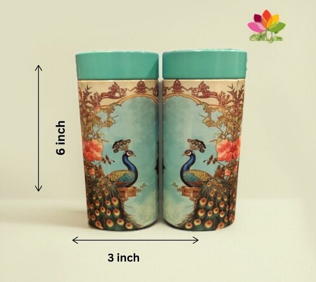 Description: Add a touch of traditional elegance to your gifting or storage with this stunning Elephant And Peacock Printed Tin Box.