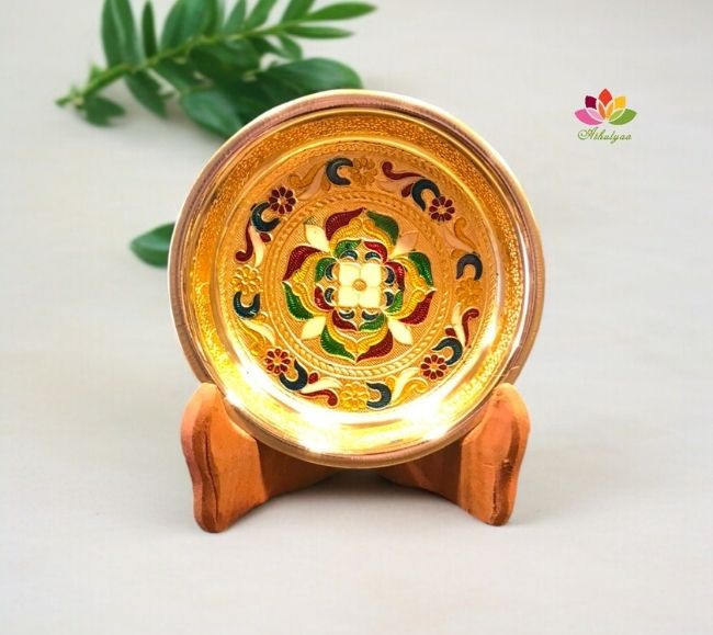 Description : The Golden Meenakari Plate is a luxurious masterpiece that combines the timeless beauty of traditional Meenakari art with the elegance of gold-toned accents. .