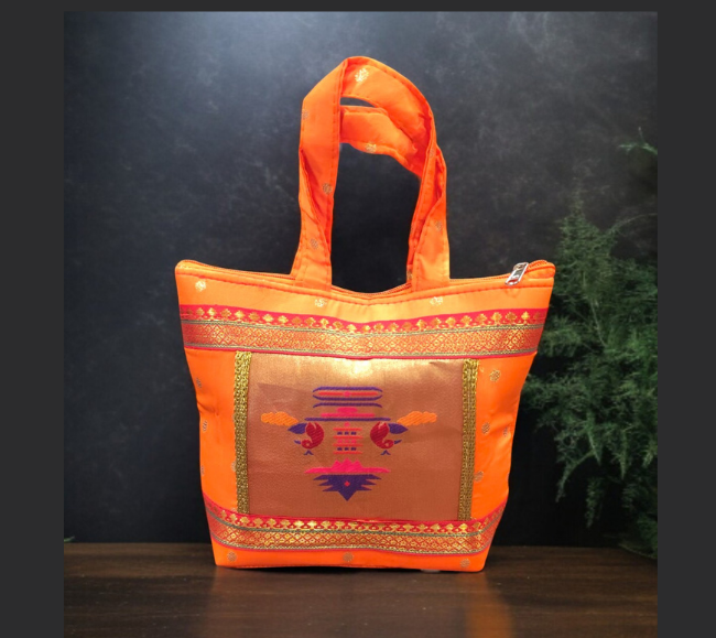 - This elegant paithani handbag is beautifull carfted with traditional motifs,making it a perfect choice for festive and religious occasions.