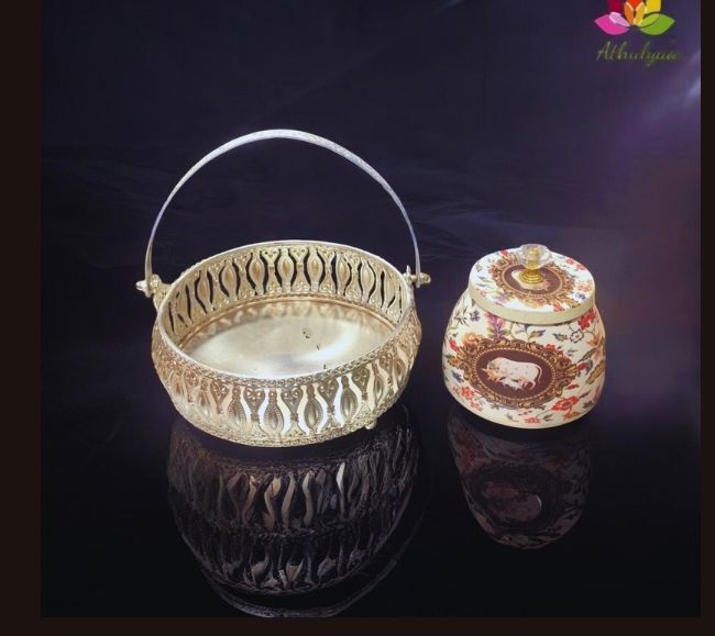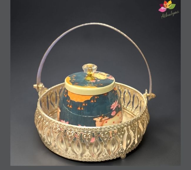 - Silver Finish basket and Pichwai Jar Combo