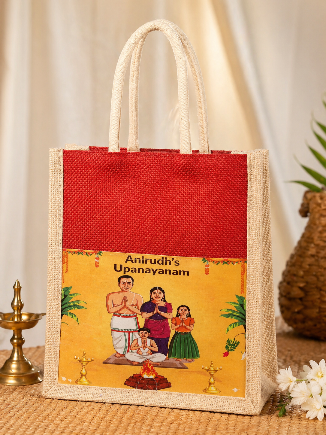Title :Upanayanam photo print jute bag- Upanayanam return gifts